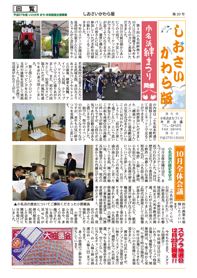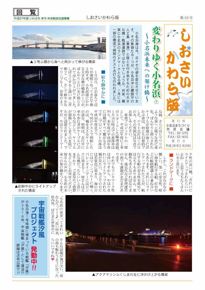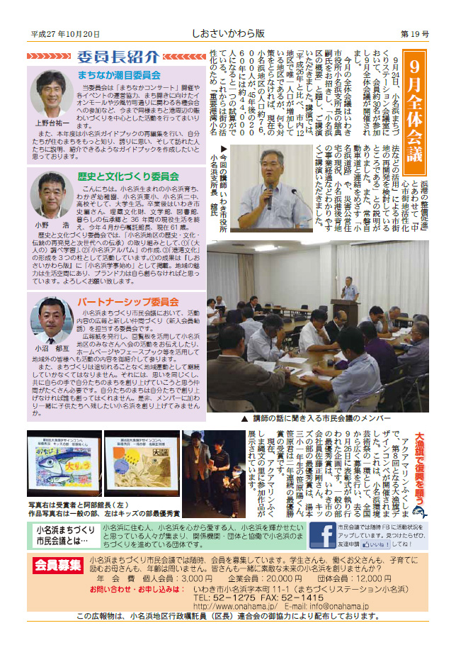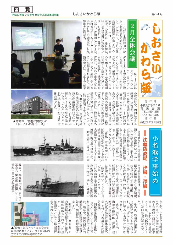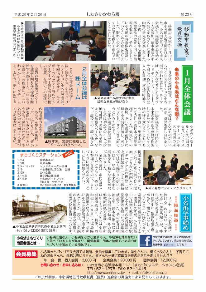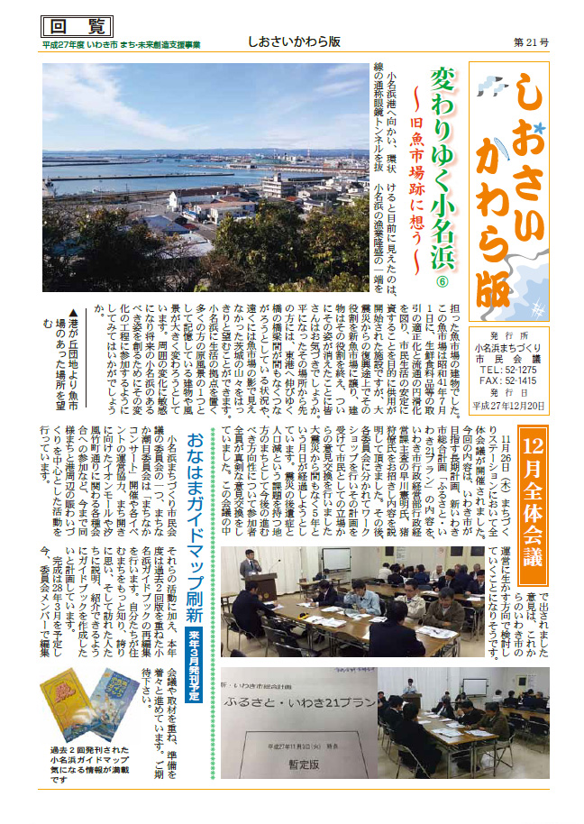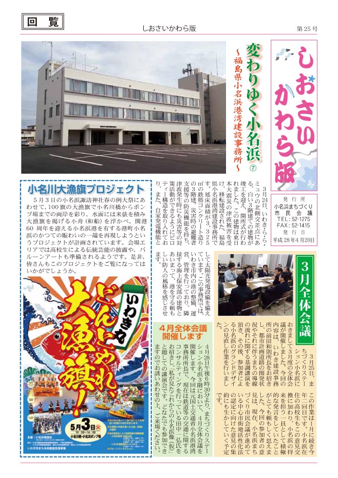 4月23日(木)18:30より4月全体会議をまちづくりステーション小名浜3Fにて開催しました。 小名浜のまちづくり事業の概要をいわき建設事務所さんの説明で勉強をしました。