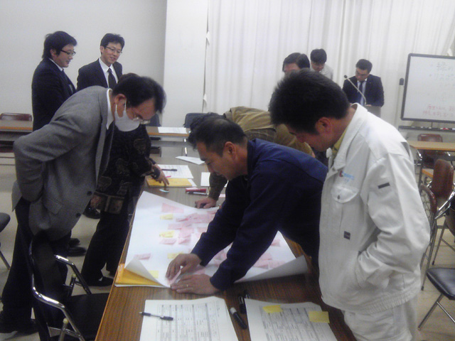 現在の状況下において何が必要で、何を見直すべきかグループに分かれ、KJ法で意見を抽出しとりまとめました。