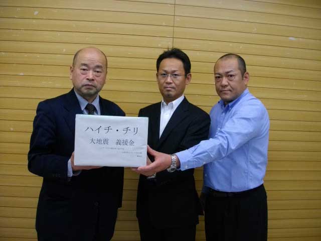 また上映会当日会場に義援金の箱を設置し、3月18日小名浜地区保健福祉センターを通して日本赤十字社に寄付いたしました。(写真左は小野所長様) |