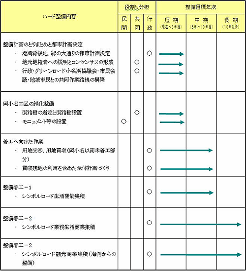 ◆ 小名浜のシンボルとなる「(仮称)緑の大通り」ハード整備の年次計画