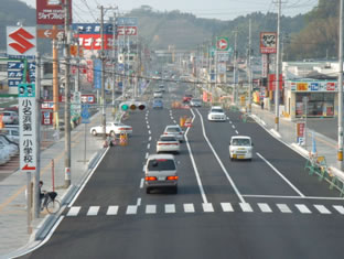 左折だけで回遊できるやさしい回遊路対策中央分離帯を設けず、歩道をまたがないため側道などに駐車場を設置女性にやさしい、右折レーンづくり |