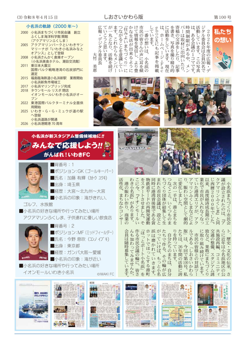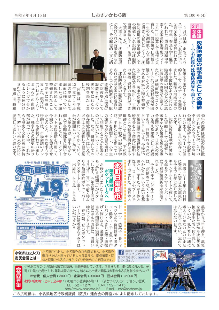 小名浜まちづくり市民会議広報紙「しおさい瓦版 4月号 第100号」が出来ました。